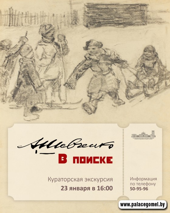 Вы сможете познакомиться с результатами работы сотрудников музея с коллекцией произведений классика белорусского искусства, уроженца д. Корма Добрушского р-на Акима Михайловича Шевченко (1902-1980), хранящейся в музейном фонде Гомельского дворцово-паркового ансамбля, а также многогранной личностью самого художника. А еще гостей экскурсии ждет приятный подарок.