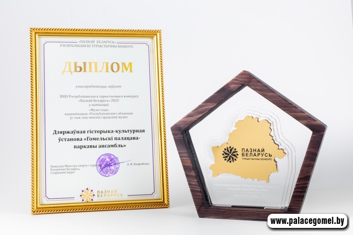 XXIII Республиканский туристический конкурс "Познай Беларусь" 2025Государственное историко-культурное учреждение "Гомельский дворцово-парковый ансамбль" награждено дипломом лауреата XXIII Республиканского туристического конкурса "Познай Беларусь" 2025 в номинации "Музеи года" подноминации "Республиканские и областные (в том числе минские городские) музеи".
