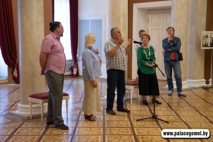 У разгорнутай у сценах палаца выставе БСМ прымуць удзел мастакі з розных абласцей Беларусі, што дазволіць жыхарам і гасцям Гомеля ўбачыць глыбінныя скульптурныя працэсы ў маштабе краіны. У экспазіцыі прадстаўлены творы найстарэйшых майстроў у галіне скульптуры. Сярод іх народны мастак Беларусі Л. М. Гумілеўскі, вядомы гамяльчанам як стваральнік (разам з сынам Сяргеем) помніка Кірылу Тураўскаму ў скверы каля драмтэатра. З 1981 года жыве і самааддана працуе ў нашай краіне, увайшоўшы ў склад БСМ, народны мастак Чачэнскай рэспублікі і Рэспублікі Дагестан Х. Г. Асадулаеў, якога называюць «беларускім дагестанцам». Побач з імі - работы прадстаўнікоў сярэдняга і малодшага пакаленняў, выкананыя ў дрэве, камені, бетоне, метале, кераміцы і інш.
