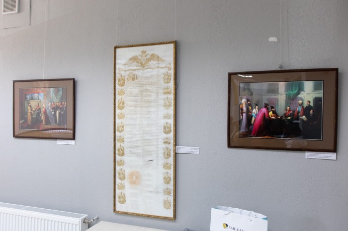 Кроме того, в нашем музее хранится уникальный документ 1827 года - Полномочие Николая I, данное И.Ф. Паскевичу на право подписания Туркманчайского мирного договора, а в Фельдмаршальском зале экспозиции «Владельцы Гомельского имения Румянцевы и Паскевичи» можно увидеть И.Ф. Паскевича и А.С. Грибоедова, запечатленных на картинах «Встреча И.Ф. Паскевича с наследником персидского престола в Дей-Каргане» и «Подписание Туркманчайского мирного договора 10 февраля 1828 года», а также другие артефакты, рассказывающие не только о родственных связях генерал-фельдмаршала И.Ф. Паскевича и писателя А.С. Грибоедова, но и об их деятельности на ниве служения Отечеству. Демонстрация цифровых копий вышеназванных музейных предметов послужит ярким дополнением к проекту наших коллег.