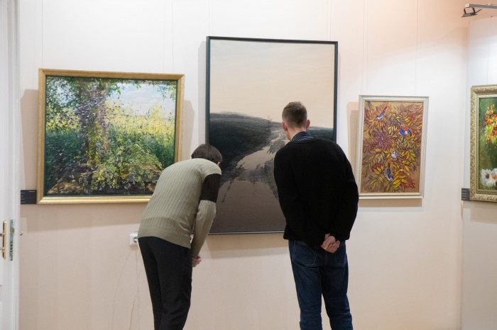 В экспозиции можно увидеть работы известных белорусских авторов, среди которых: Герой Беларуси, народный художник СССР Михаил Савицкий; народные художники Беларуси Анатолий Барановский, Май Данциг, Александр Кищенко, Владимир Товстик, Леонид Щемелев, а также такие известные мастера живописи, как Зоя Литвинова, Николай Селещук, Георгий Скрипниченко, Василий Сумарев, Валерий Шкарубо и др. Выставку можно назвать своеобразным диалогом мастеров, принадлежавших к разным направлениям и поколениям, творивших в разное время, в разных стилях и жанрах.