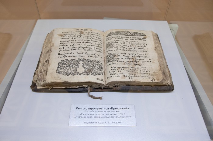 Своими подарками музей ежегодно радуют жители нашего города. Так, В 2025 г. в музейный фонд поступил «Ирмологий» - книга для богослужений с текстами церковных песнопений. Согласно выходным данным, она была отпечатана в Московской типографии в августе 1763 г. Передала в дар музею эту старинную книгу А.В. Поварич - сотрудница нашего музея. Последней известной владелицей издания, по словам дарительницы, была ее двоюродная прабабушка - Галина Петровна Дайнеко. Бытовал «Ирмологий» в селе Рогов Злынковского р-на - одном из древнейших сел Брянской области.