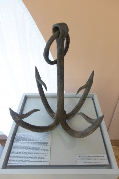 Первым в музейном фонде стал и якорь, найденный строителями моста через р. Сож в районе г. Ветка. Оригинальность оформления рогов с крючками, загнутыми к веретену, позволяет предположить, что якорь был изготовлен местными умельцами и может быть датирован XIX - первой половиной ХХ вв.