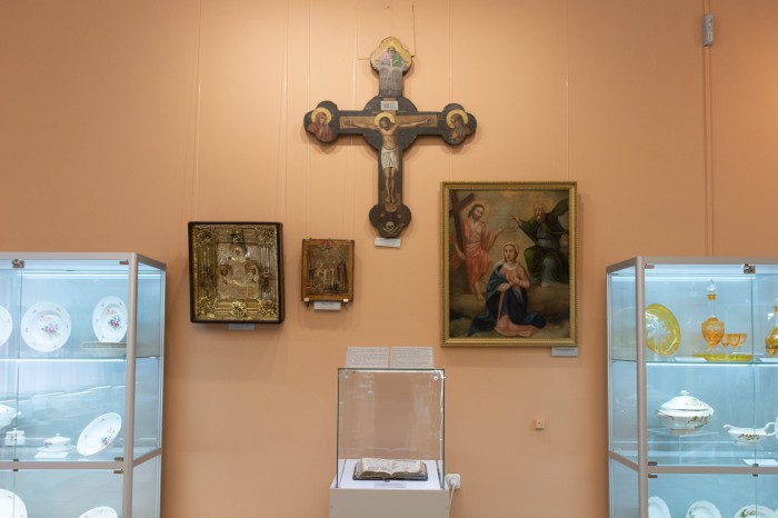 Коллекция декоративно-прикладного искусства пополнилась выносным крестом-распятием середины XIX - начала ХХ вв., который был передан в дар А.А. Стегачевым. Переданный предмет пока является единственным подобным артефактом в музейном собрании Гомельского дворцово-паркового ансамбля.